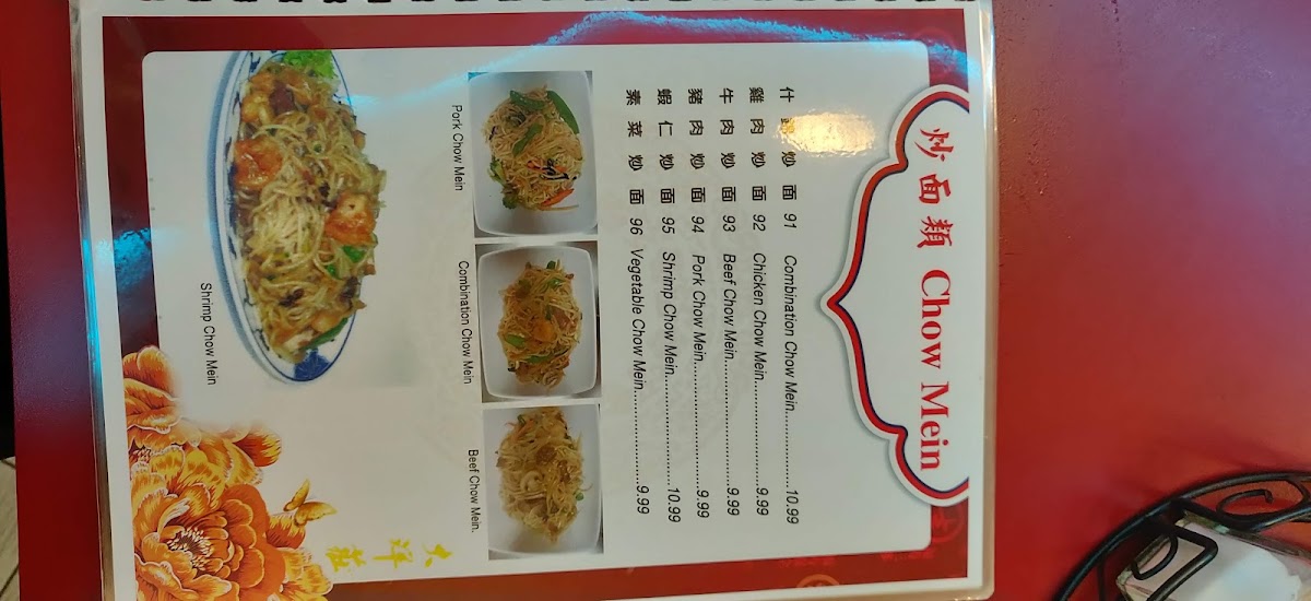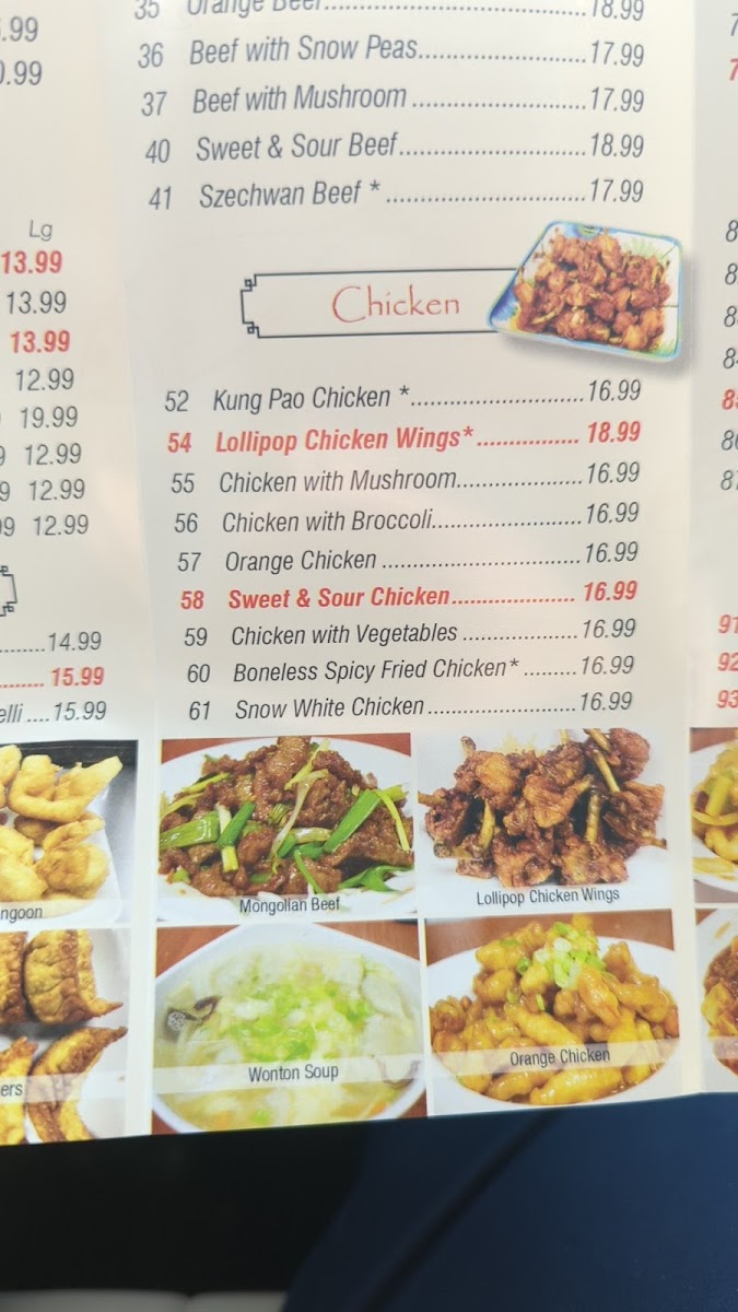 Chicken, bean sprouts, carrots, white onion, cabbage, snow peas, white mushroom, water chestnut.