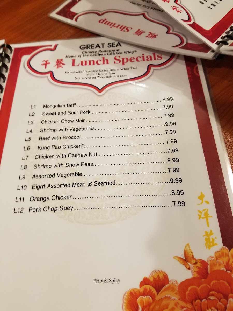 Shrimp, pork, squid, egg, sea cucumber, mung bean sheet, vegetables. Pork is a hot topping on the side. Served with homemade mustard sauce.